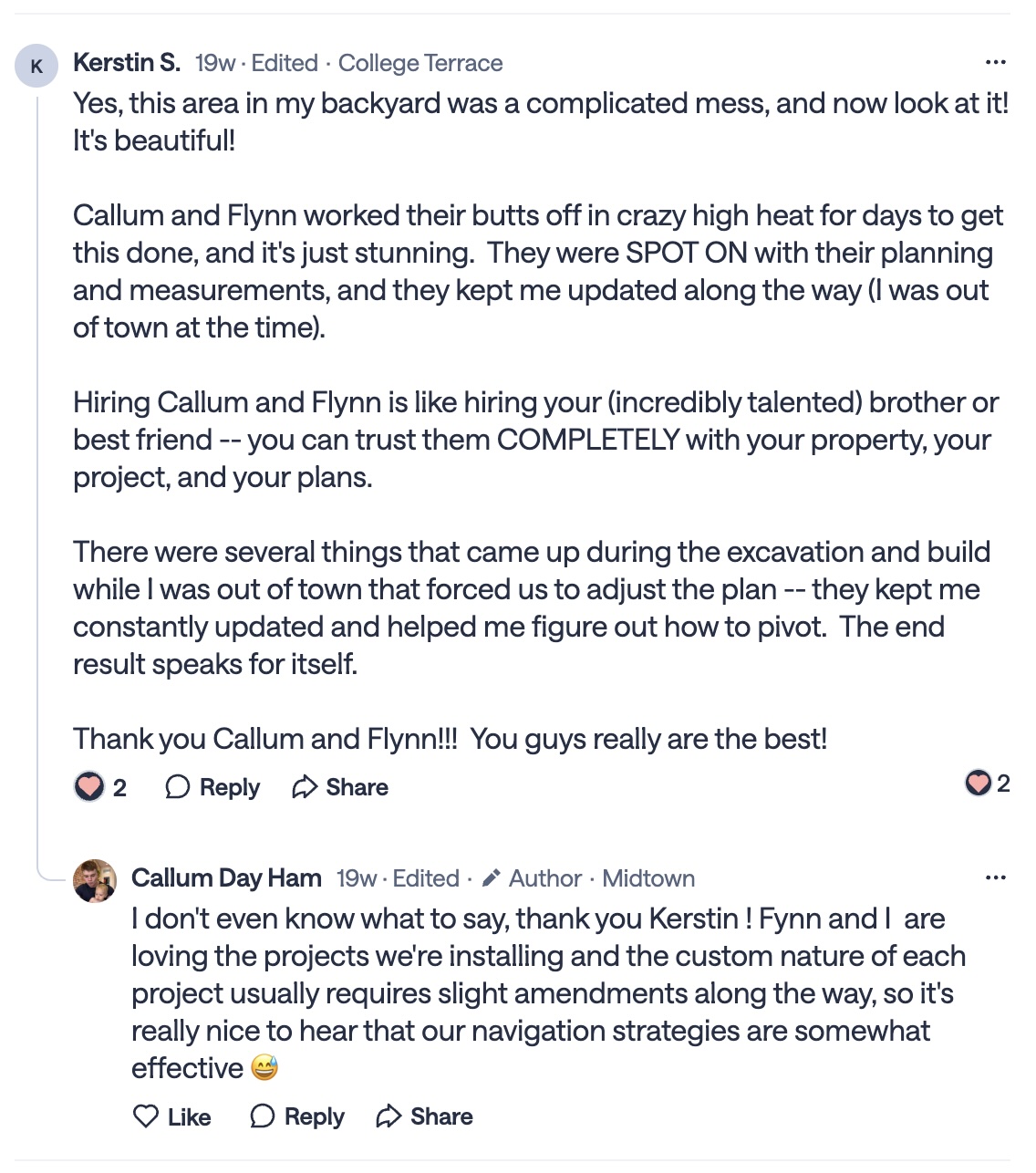 Cal and Fynn don't expect you to sign over the future of your Bay Area home's outdoor aesthetics on a whim. This site exists to communicate two things: the brothers care deeply about every project they engage in, and they have lived experience in design and contractor management that makes a free consultation genuinely valuable for anyone looking to revamp their space.