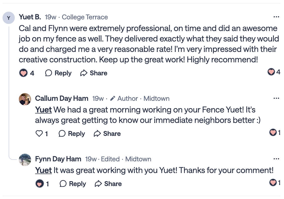 Over the summer, he and Fynn launched a local carpentry business, serving 40+ neighbors with fences, garden boxes, and small decks—getting their hands dirty and mastering the design-to-build process firsthand.